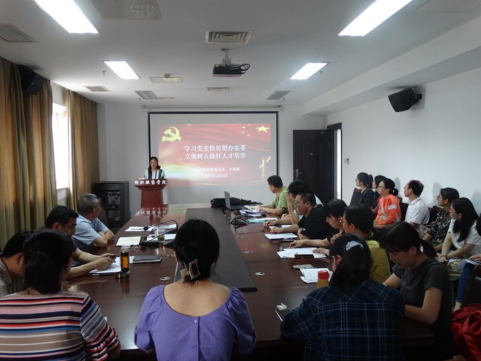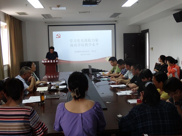 会前,副经理王春霞、毕红军分别为全体党员上题为《学习党史悟思想办实事 立德树人做好人才培养》、《学习党史汲取力量 提高公司教学水平》的党史学习教育专题党课,交流了自己在党史学习教育中的收获和感悟。