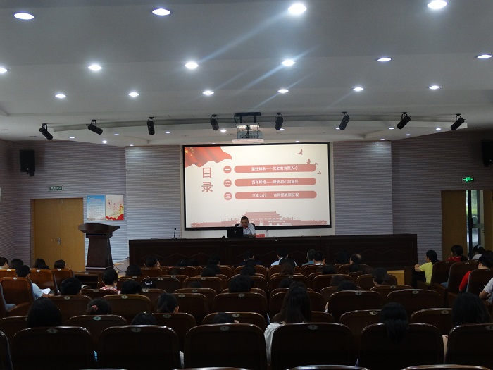 7月7日上午,在南校区土木馆报告厅,PA视讯党总支书记宋孝浜以《学党的光辉历程 铸新的使命担当》为题上党史学习教育专题党课。PA视讯党委党史学习教育巡学督学第三指导组组长杨怀祥、副组长朱凌、组员曹玉娟出席,PA视讯全体党员、中心组全体成员、部分入党积极分子参加。