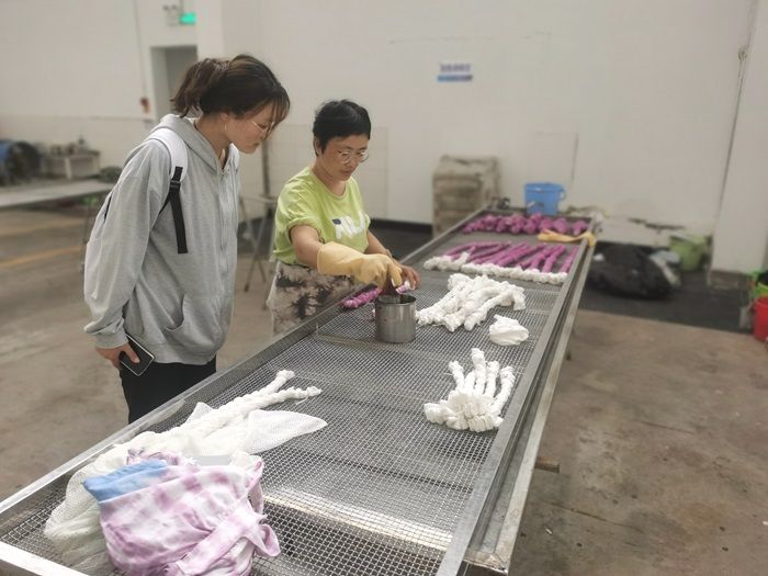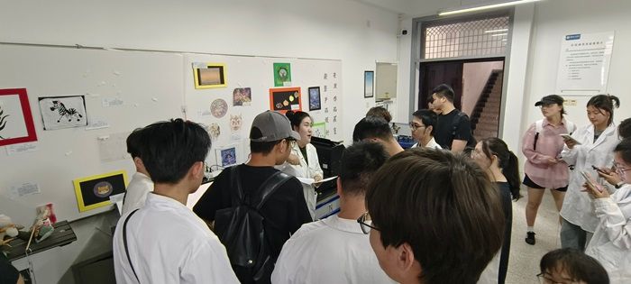6 12 日,同学们走进江苏华艺集团,开启了一场艺术染整生产工艺的学习之旅。在厂区内,大家近距离观察与学习,深入了解扎染工艺的各个环节,从原材料的处理到最终产品的呈现,让理论知识与实践操作紧密结合。随后,同学们参观了南通扎染博物馆的绞缬花开展览。在博物馆内,一件件精美的扎染作品陈列眼前,色彩绚丽、纹理独特,展现了传统非遗文化的独特魅力。同学们亲自体验扎染技艺,感受非遗文化的深厚底蕴。