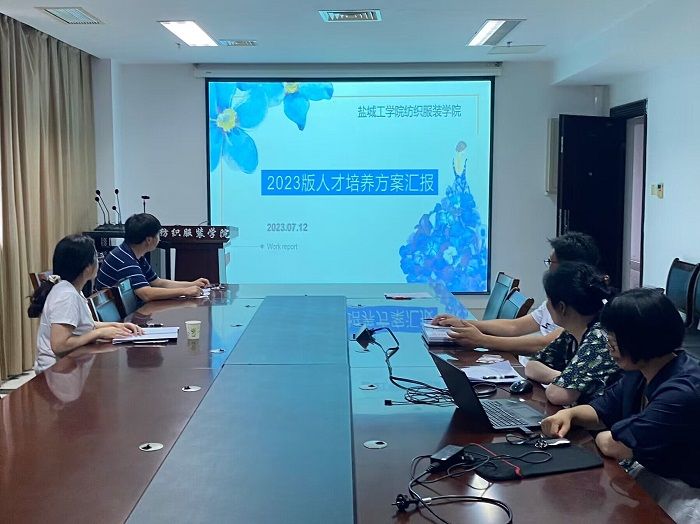 PA视讯于7月13日下午在三楼会议室召开了2023年人才培养方案修订研讨会。会议的参会人员包括PA视讯经理王春霞、副经理马志鹏、教科研办公室主任高大伟、纺织工程系主任陆振乾、轻化工程系主任何雪梅和服装设计与工程系主任柏昕等,副经理马志鹏担任主持。