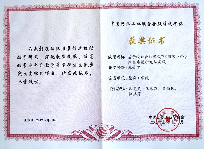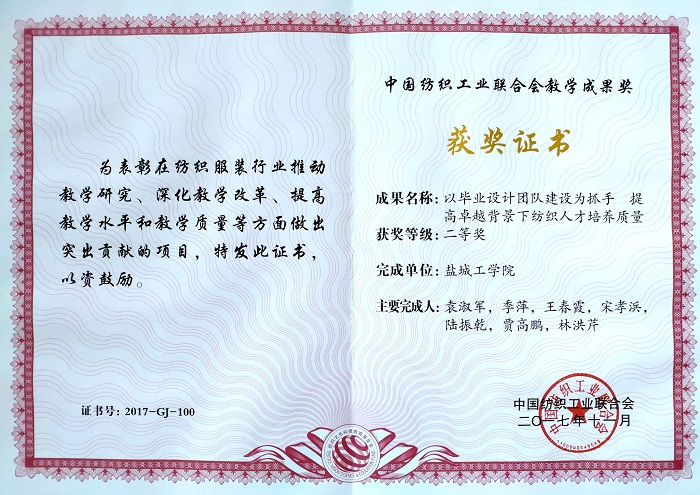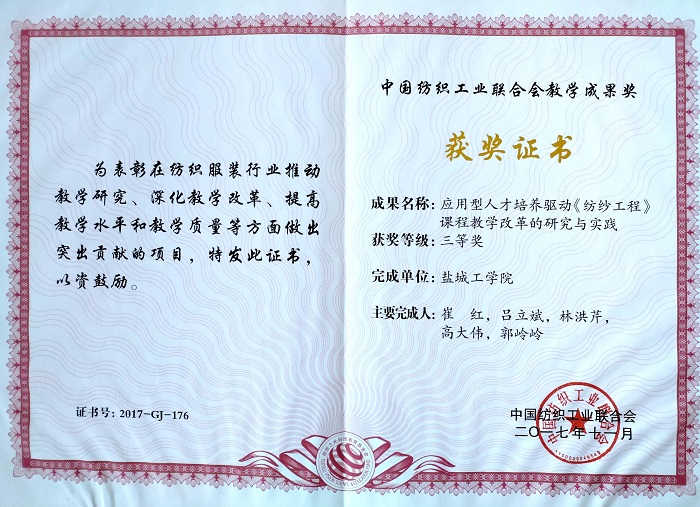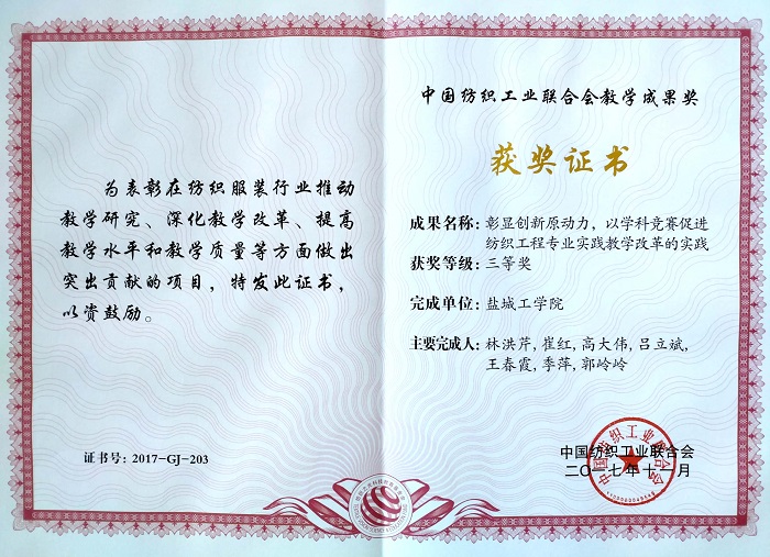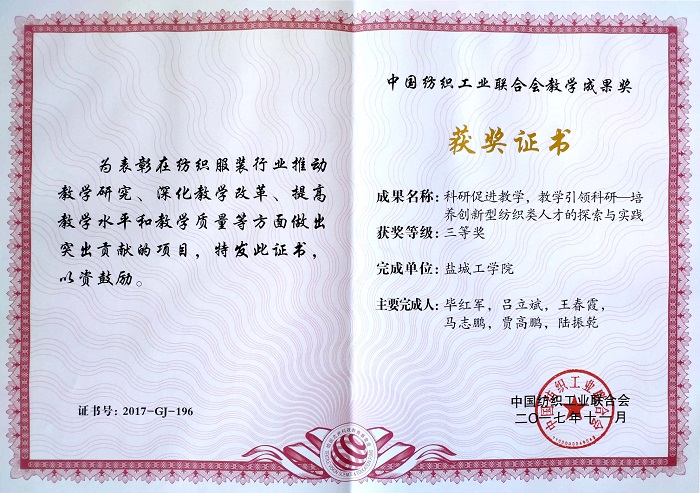 12月18日,“纺织之光”2017年度中国纺织工业联合会科技教育奖励大会在北京人民大会堂隆重举行。公司PA视讯近年来不断深化教学改革,努力提高教学质量,在毕业设计团队建设、科研促进教学、学科竞赛、课程建设等方面取得了显著的成绩,喜获中国纺织工业联合会教学成果二等奖一项、三等奖四项。