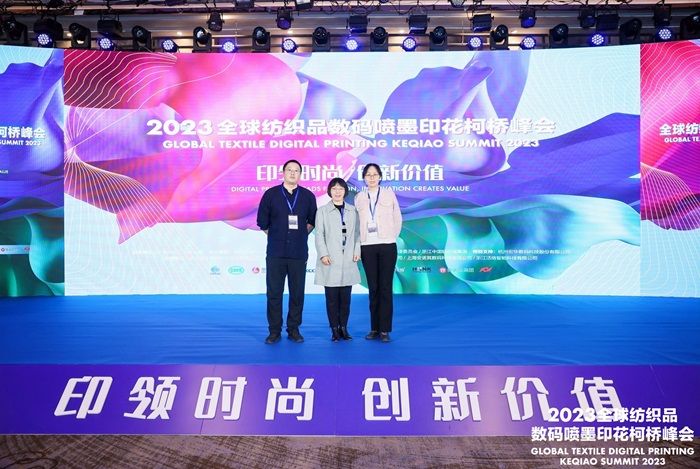轻化专业教师何雪梅、王丽丽和葛元宇代表公司参加了2023年11月6日在浙江绍兴柯桥举行的2023全球纺织品数码喷墨印花柯桥峰会。此次峰会作为“第六届世界布商大会”的专题大会,吸引了来自全球的印染行业专家和领军人物。