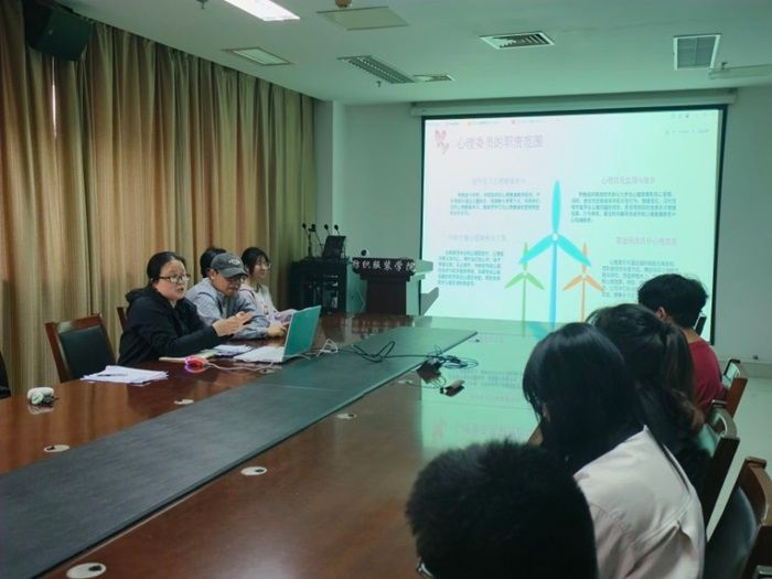 为加强公司心理健康教育工作,提升心理委员的专业素养和工作能力,构建完善的心理健康教育工作网络,公司于4月9日在公司三楼会议室举办了心理委员培训会,大一、大二各班心理委员及心理联络部全体成员参加了此次培训会。培训会由学工办负责人王超主持,心理辅导员倪梅娟担任主讲。