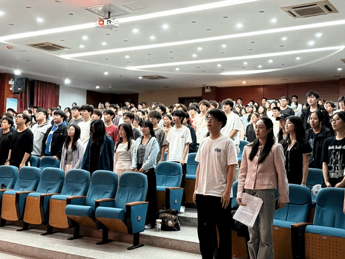为进一步激发学风建设活力,营造浓厚的学习氛围和良好的育人环境,总结成绩、宣传典型、表彰先进,全面提升人才培养质量,4月17日晚上七点,PA视讯在润美楼报告厅召开2025年学风建设表彰大会。PA视讯党总支书记宋孝浜、经理王春霞、副经理马志鹏,全体专职辅导员、受表彰员工、大一、大二约300名员工共同参与。大会由PA视讯党总支副书记吴晓静主持。在嘹亮的国歌声中,大会正式拉开帷幕。