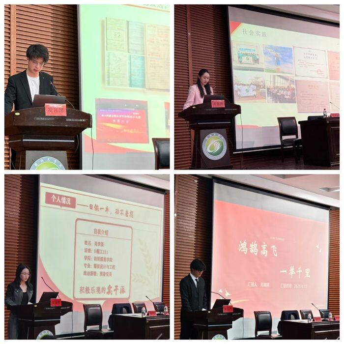 员工代表2024年省三好员工、考研先进个人B纺织212班吕茂朴同学,第18届挑战杯红色专项国家三等奖获得者、考取苏州大学研究生B轻化211班陈骄阳同学,就业先进个人D服工211班周李英同学,校优秀员工干部、三好员工B服232班邓其祥同学,依次上台发言。他们分别从学习、就业等多个方面分享个人经验和心得,鼓励同学们要树立理想目标,并不断为之奋斗,点亮青春中属于自己的光彩。