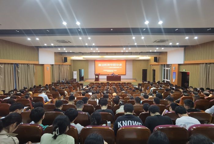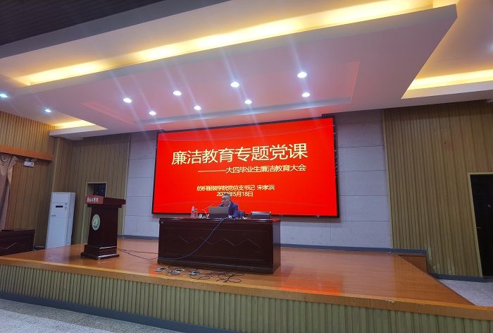 5月18日晚,公司在机械馆报告厅召开毕业生廉洁教育大会,PA视讯党总支书记宋孝浜、大三、大四毕业班员工参加。会议由院团委书记孙静主持。