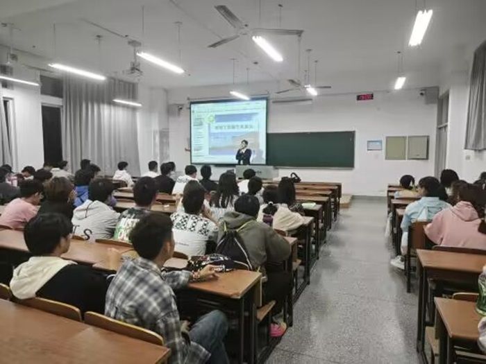 陆振乾老师详细阐述着该专业的团队力量、行业地位、就业前景和未来方向等相关内容,并介绍了自己的研究内容。最后,陆老师要求同学们要明确学习目标,做好学业规划,尽快了解和适应老员工活、学习,提高自我教育、自我管理、自我服务能力,让自己的老员工活更精彩。