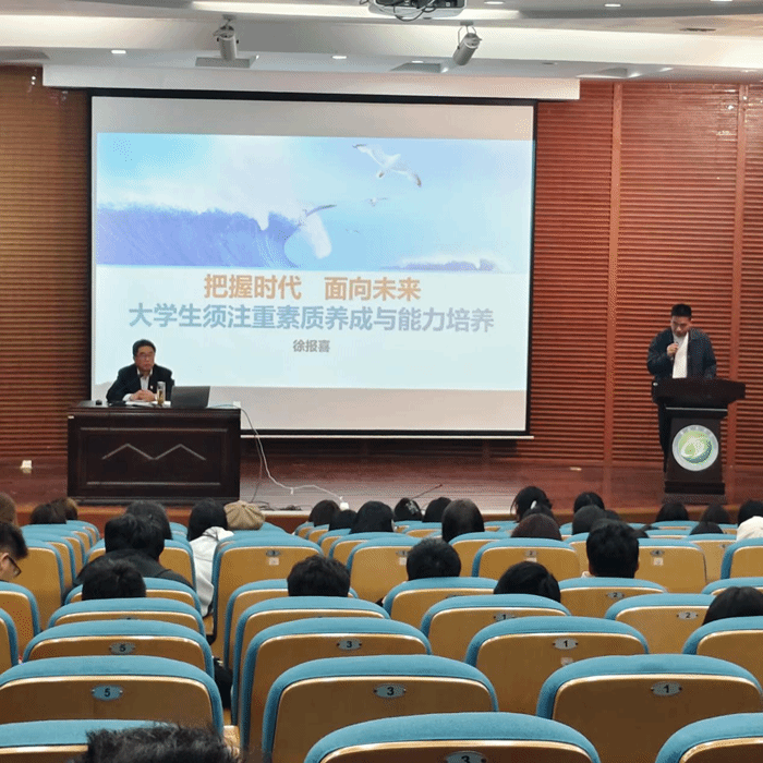 徐报喜围绕“把握时代,面向未来”这一主题,引导员工要从“要我学”转变到“我要学”,形成学习知识反思问题、提升发现和解决专业领域问题的能力,向高级思维阶段过渡,最终成为一个德智体美劳全面发展的社会主义建设者和接班人。依托专业教育塑造自身的专业能力、专业认同和专业精神,敢于质疑,善于思考,提升素质意识和多重能力,更好面对未来,实现成人成才成功。此外,徐主任强调有德有才才是步入社会的基本要求,综合分析能力是应具备的最基础的能力。一个人素质和能力的养成与培养是一生渐进不断提升的过程,需在广泛的学习和打磨。“星光不问赶路人,时光不负有心人”,讲座最后,徐主任寄语希望同学们要珍惜当下美好的老员工活,用青春和热情创造绚烂的未来。