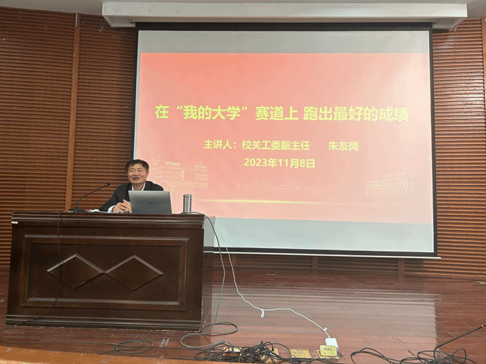 朱友岗以“我的大学”赛道上,跑出最好的成绩为主题,倡导老员工担负社会实践和任务,夯实基础以把握机遇,勇攀理想的高峰。实现目标要学习知识学会思考,他对同学们提出要求:要探索自己的兴趣爱好,要追求自己所学专业课程的深度和广度,要充分利用身边的资源,实现目标要善于制定人生规划提升自身格局,规划好自己每一学年的任务实现目标,多学习沟通的技巧加强人际交往能力。并以自身游玩经历启示同学们“大度能容容天下难容之事,慈颜常笑笑天下可笑之人”。实现目标要做好责任担当,时刻铭记父母亲的殷切希望,坚定理想信念,听党话跟党走,实现中华民族伟大复兴。