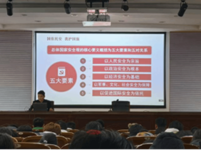 讲座以真实案例切入,解读危害国家安全行为,如颠覆政府、分裂国家、参与间谍组织等,助力同学们初识国家安全内涵,并结合习近平总书记相关论述,深入阐释总体国家安全观,凸显其对民族复兴的深远意义。