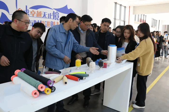 活动中,同学们先后来到兰邦特种纱、荣鸿新材料、题桥纺织等3家纺织类重点产业链企业和“旖旎临海”纺织类展陈中心参观学习。在解说员的现场讲解下,员工们深入探访现代化生产车间,见证高性能纤维材料的智能生产流程,观摩从原料到成品的全流程智造体系,实地感受到射阳纺织智造的强大脉搏。