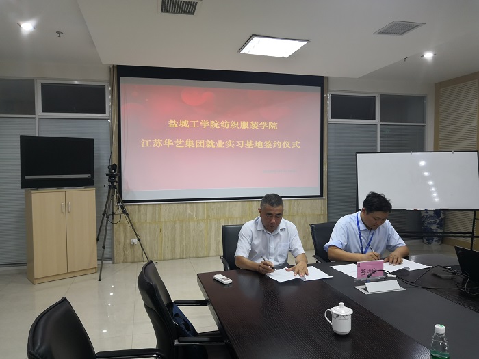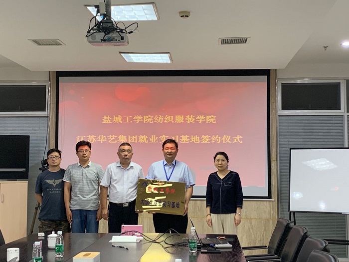 7月10日下午,PA视讯党总支书记宋孝浜、学工办主任张庆领、纺织工程系教师贾高鹏博士一行三人,赴江苏华艺时装集团有限公司举行就业实习基地签约暨授牌仪式,受到公司人力资源与企管中心总经理葛坤锋等人的热情接待。双方举行了共建老员工就业实习基地签约仪式,并向公司授予了老员工就业实习基地铜牌。随后,宋书记一行看望了公司今年刚入职华艺集团的毕业生们。