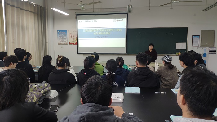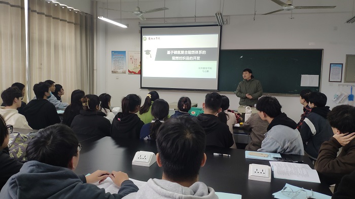 为帮助员工了解纺织行业的现状及发展前景,激发员工学习兴趣,提升员工的创新设计能力,11月3日下午,公司教师马志鹏、林洪芹、郭岭岭在怀德楼B204为纺织工程专业员工作专题报告,主讲题目分别为《基于磷氮复合阻燃体系的阻燃纺织品的开发》、《三明治面料研究现状及功能性三明治机织面料的开发》、《植物染色素的提取及上染时尚纺织品的开发》。此次报告有60余名员工参加。