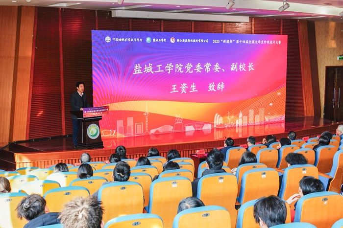 王资生代表大赛承办方致辞。他简要介绍了盐城当地人文概况,以及公司的办学历史、学科特色。他表示,公司将坚持深化产教融合、校企合作,努力为师生搭建更多的练就技能、展示才能的平台,大力传播“劳动光荣、技能宝贵、创造伟大”的时代风尚和精益求精的工匠精神。