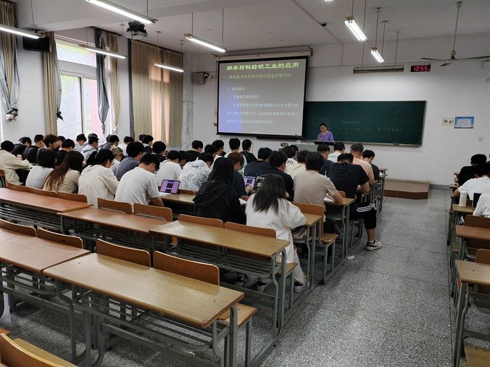 5月27日上午,董事长、PA视讯党委副书记邵荣听取公司青年教师李子银博士讲授的双语课程《染整新技术》,评估处副处长蔡小平和公司负责人随同听课评教。