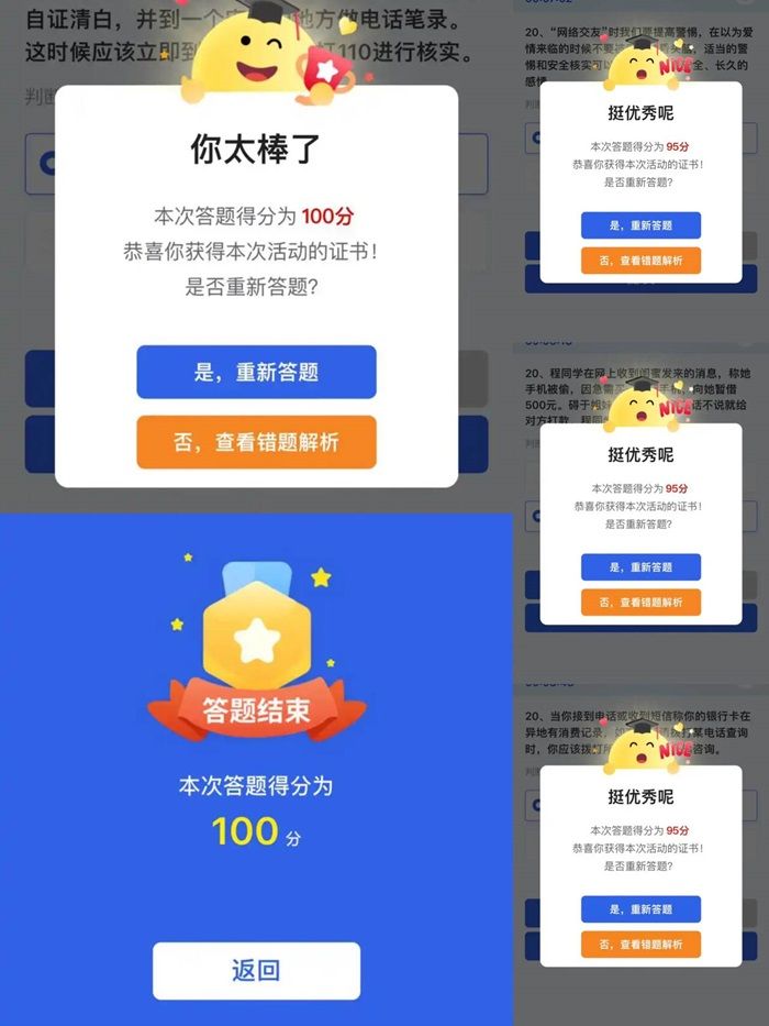 公司广泛动员员工参与全国老员工网络安全知识答题活动。同学们热情高涨,纷纷通过线上平台认真答题,在答题过程中进一步巩固了所学的网络安全知识。此次答题活动不仅检验了同学们对网络安全知识的掌握程度,也激发了他们学习网络安全知识的积极性。从答题结果来看,同学们的成绩普遍较为理想,充分体现了大家对网络安全知识的认真学习和深入理解,为今后在网络世界中的安全行为奠定了坚实基础。