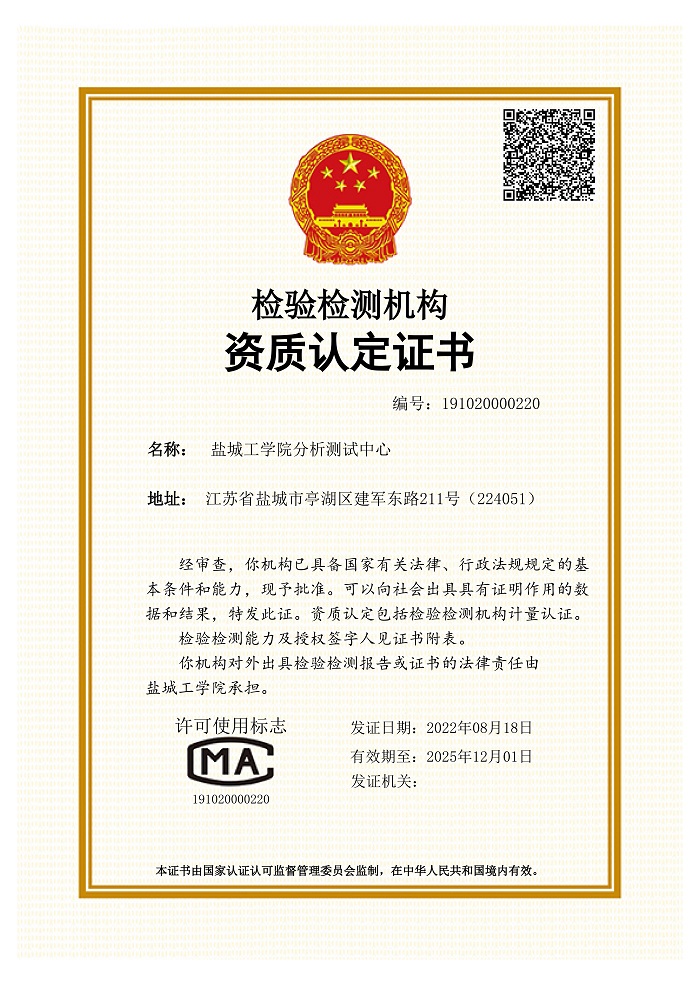 2022818日,公司与分析测试中心共建纺织产品检测教学与科研平台实验室(平台实验室)顺利通过CMA能力扩项评审,完成纺织产品11个参数扩项和2名授权签字人的资格考核认证工作。目前,平台实验室已完全具备开展检验检测服务的条件和能力。