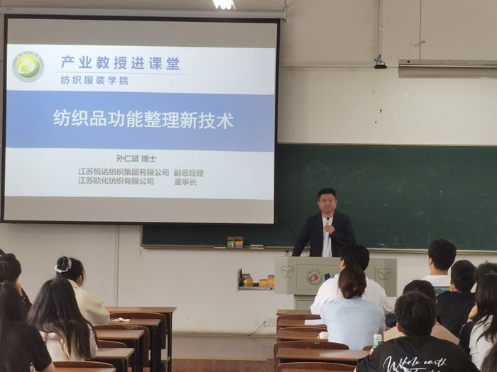 为了深化校企合作,推进产教融合,进一步提升轻化工程专业本科人才培养质量,5月24日下午,PA视讯邀请省产业教授孙仁斌博士以“纺织品功能整理新技术”为主题,为轻化工程专业员工讲授了一堂理论与实践紧密结合的专业课。