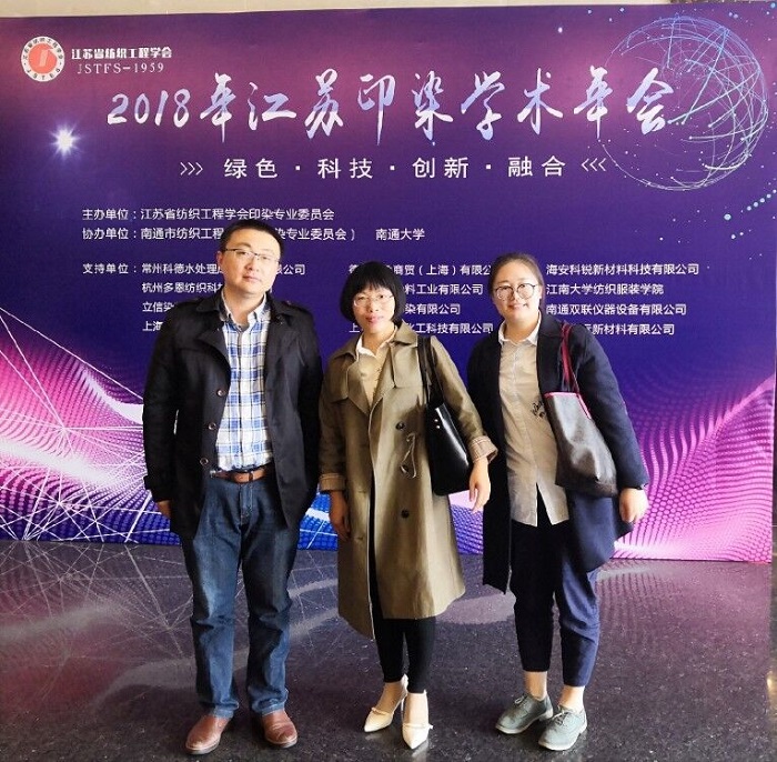 10月23-24号,PA视讯轻化专业学术带头人周天池副经理、轻化工程系老师何雪梅、蔡露博士受2018江苏省纺织工程学会印染专委会邀请,参加由江苏省纺织工程学会主办,南通市纺织工程学会(印染专业委员会),南通大学PA视讯协办的2018年江苏印染学术年会。