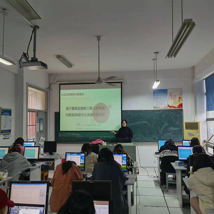 为帮助服装设计与工程员工了解服装专业的发展现状与前景,激发学习兴趣,11月6日下午,在怀德楼A208,李慧、程冰莹老师分别进行了《服装3D设计》、《消防服款式设计》的专题报告,公司科研经理周天池主持,员工累计80余人参加。