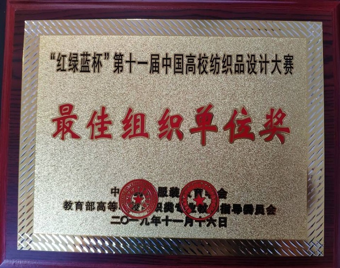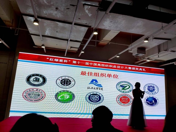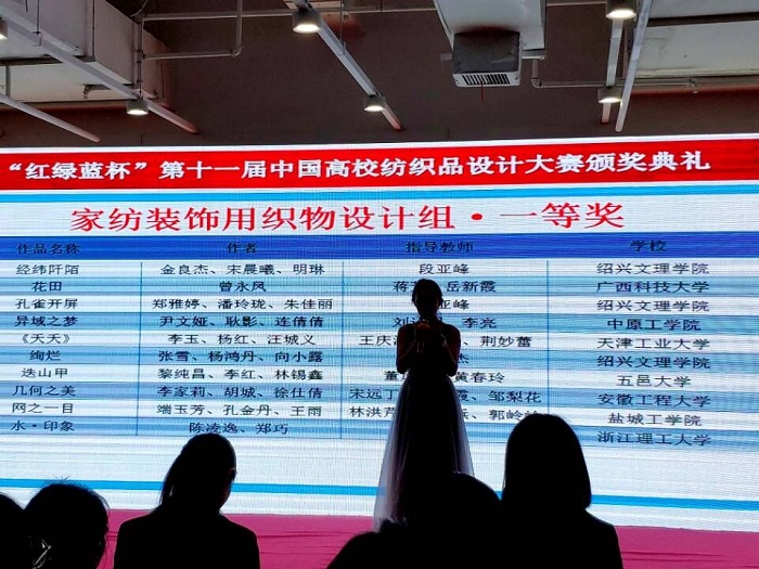 11月16日,“红绿蓝杯”第十一届中国高校纺织品设计大赛颁奖典礼在绍兴柯桥区长发商务中心落下帷幕。本次大赛由中国纺织服装教育学会、教育部高等公司纺织类专业教学指导委员会主办,绍兴柯桥经济技术开发区管委会、绍兴文理公司共同承办,是中国高校纺织品设计类比赛中最具影响力的传统赛事之一。中国工程院院士蒋士成教授、中国纺织服装教育学会倪阳生会长、绍兴市柯桥区有关领导及国内相关纺织院校领导等出席颁奖典礼。