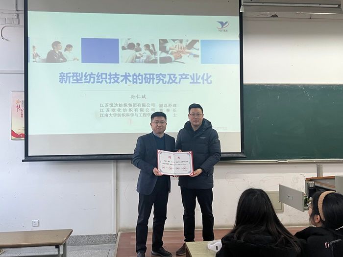 PA视讯近期举办了“产业教授进课堂,产教融合促成才”活动,旨在加强团队建设、促进校企合作,提升纺织专业人才培养质量。12月11日下午,公司邀请到江苏悦达纺织集团有限公司副总经理孙仁斌博士,在博学楼A202为员工讲授《新型纺织技术的研究及产业化》。