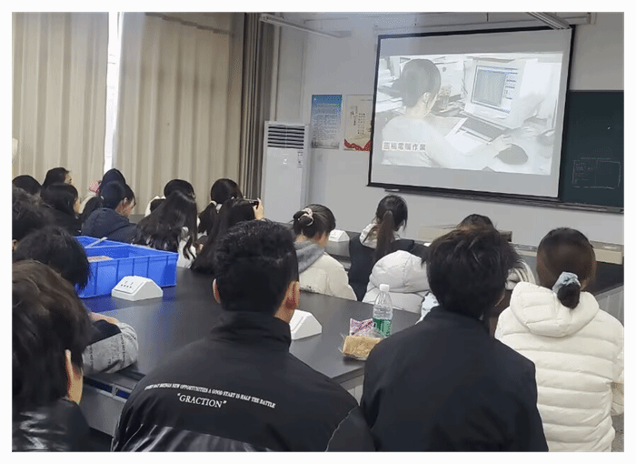 实习第三天,员工们集体视频学习先进印染企业的生产工艺流程、主要设备、生产组织与管理,为员工确立积极择业就业思想奠定基础。