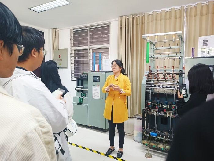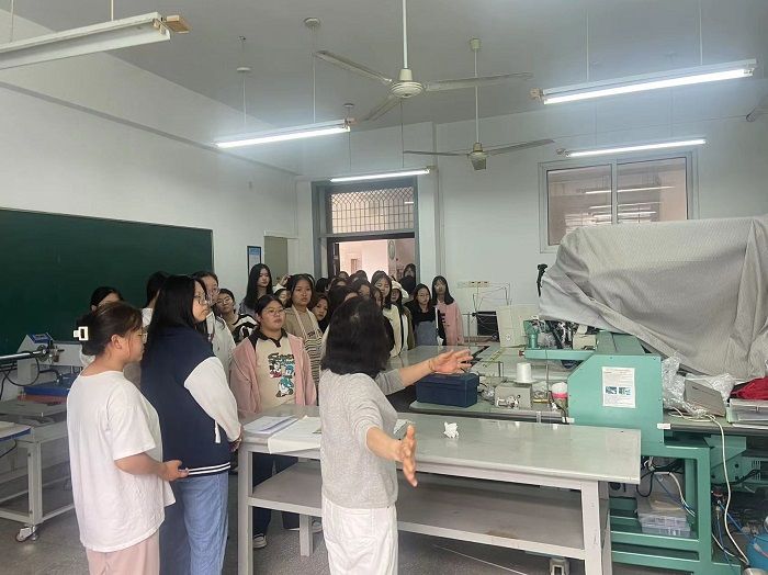 在实验中心老师的带领下,主要参观了纺纱实训平台、服装工艺实验室、大型染整实验室以及纺织品展示室等。参观期间,老师们从实验仪器、技能竞赛、行业前景、实验室安全等方面进行了介绍,让大家对自己的专业有了初步的认识,并帮助新生树立实验室安全意识。